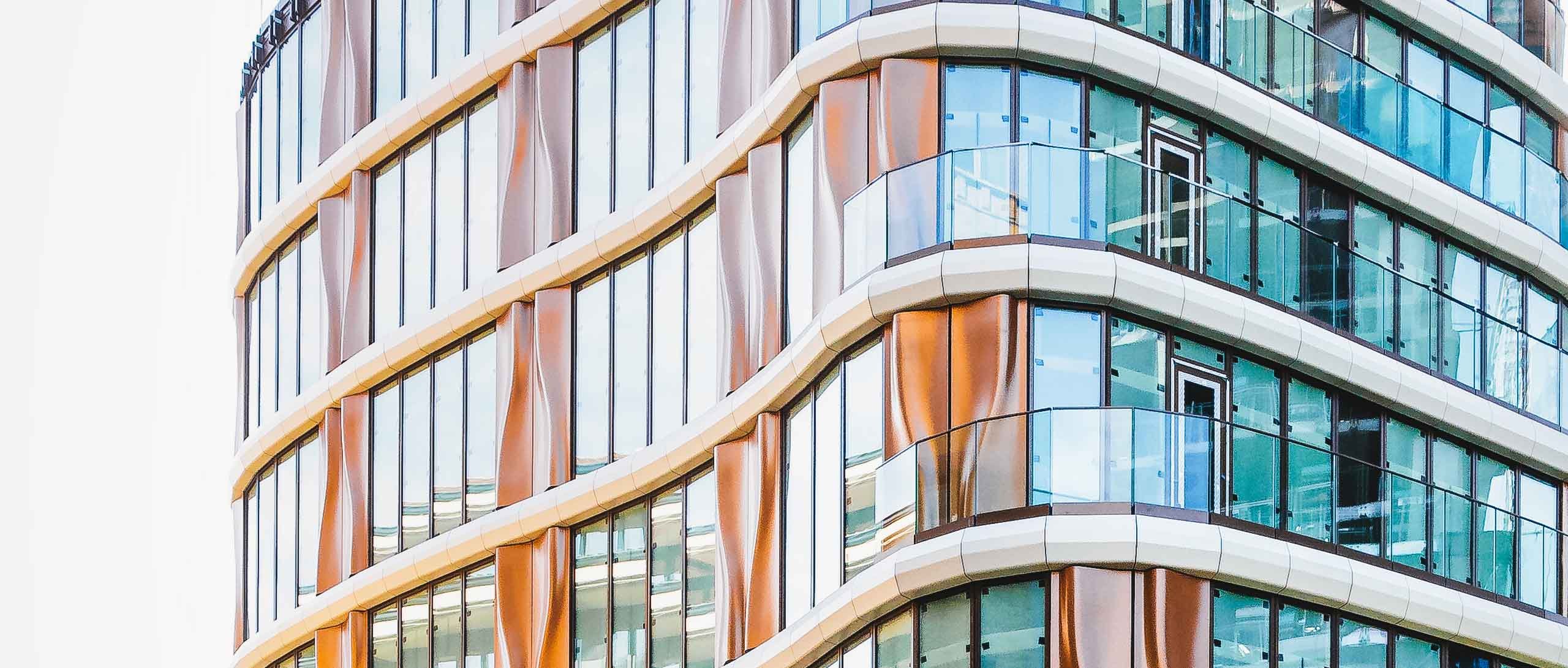 Création d’une élégante façade en verre ondulante avec des balcons en saillie qui se démarquent, sur deux blocs résidentiels et un développement à usage mixte dans l’un des centres culturels les plus appréciés de Londres.