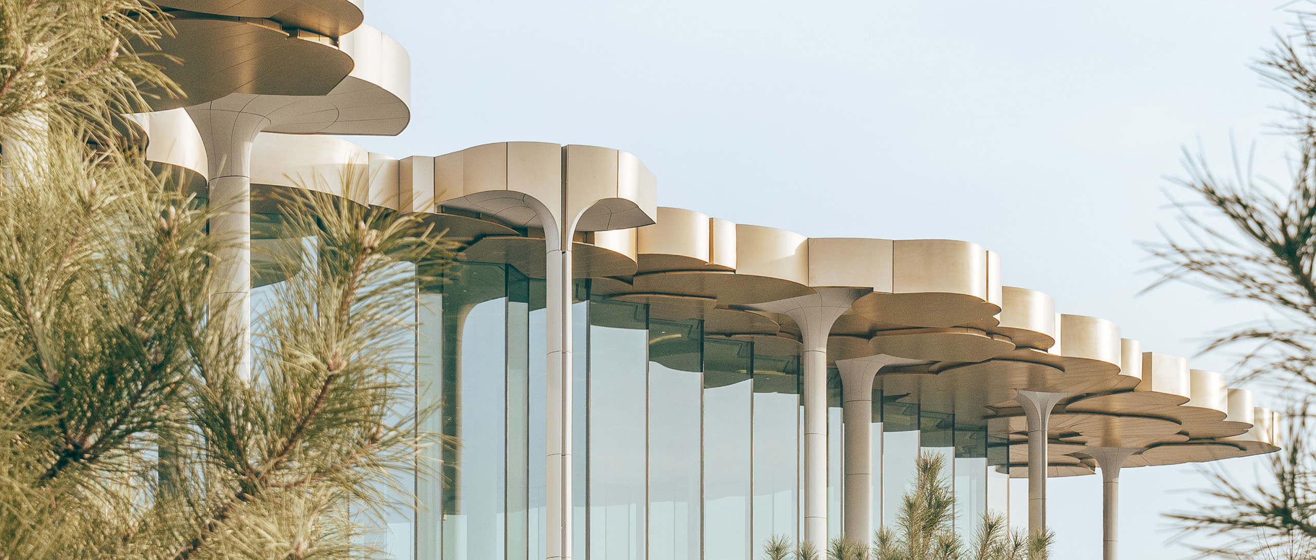 La conception du socle en terre cuite a nécessité une analyse pour étudier l’utilisation de différentes méthodes de support et de fabrication pour la terre cuite, tout en tenant compte des limitations de l’approvisionnement local. Les verrières en verre ont été conçues pour imiter la forme organique créée à l’intersection des colonnes structurelles en “arbre”, tout en rationalisant la forme pour faire face aux limites de fabrication des composants.