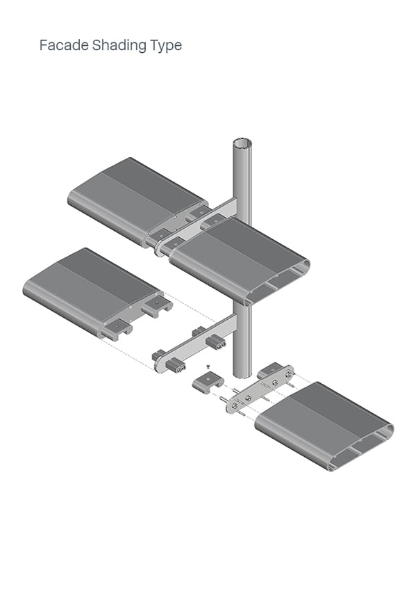 Un élément clé de l’architecture est la stratégie de protection solaire. Celle-ci repose sur une approche systématisée de la structure de support et de la modularité des éléments d’ombrage, permettant une stratégie d’ombrage optimisée pour chaque travée en ajustant l’angle, la profondeur, la densité et la couverture des éléments. Cela permet au système d’offrir un confort visuel et lumineux optimal, ainsi qu’une transparence et des vues adaptées à l’orientation et à l’ombrage propre à chaque façade.