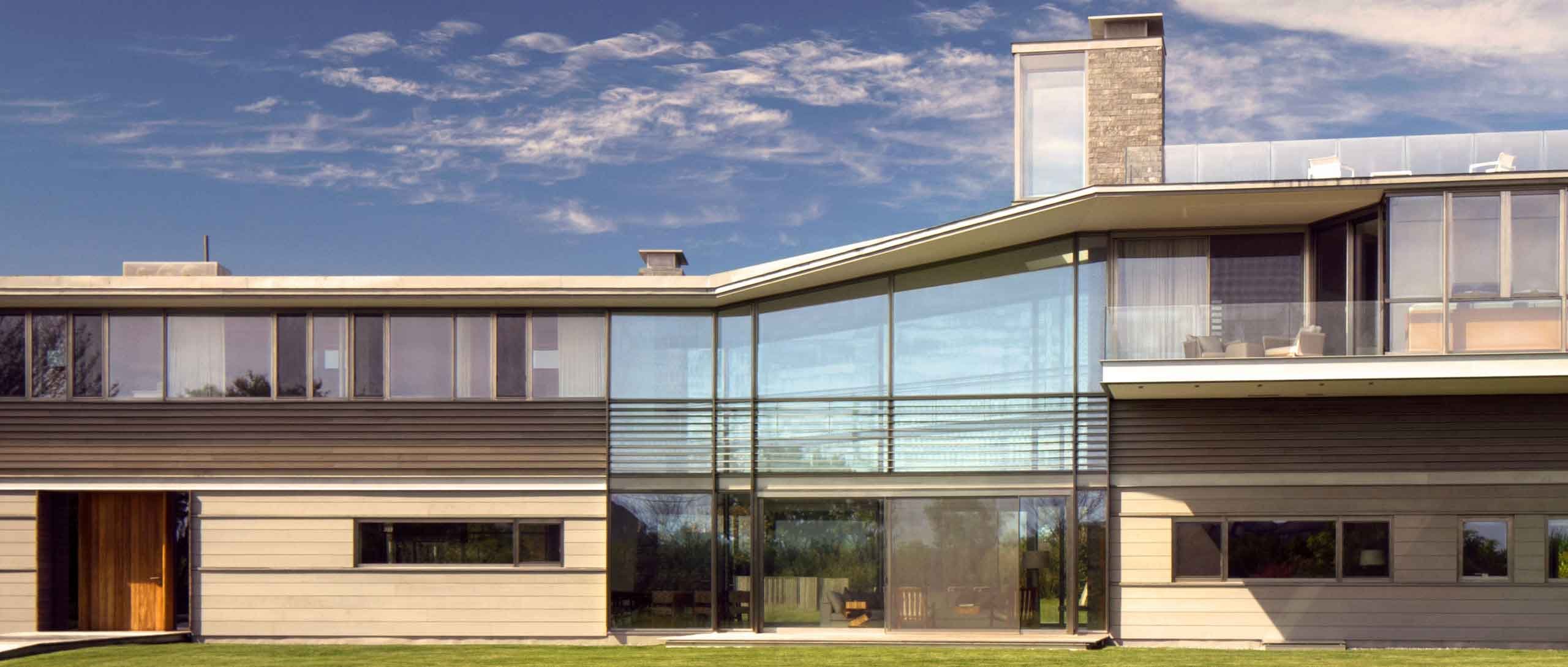 Résidence privée en bord de mer, utilisant une mince structure en acier et en verre pour répondre à une exigence architecturale et maximiser la vue sur l’océan.