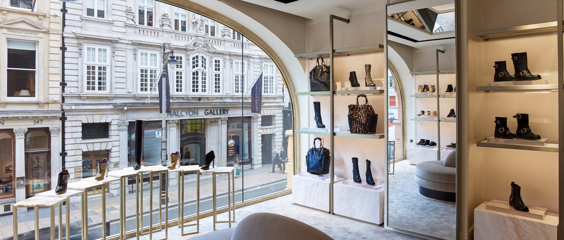 Reconfiguration structurelle d’un bâtiment à usage mixte en une seule unité de vente au détail pour la marque de mode de luxe Jimmy Choo.