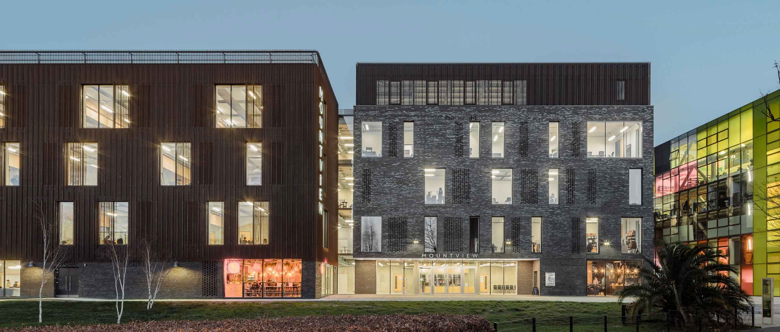 Ce nouvel édifice de la Mountview Academy of Theatre Arts est situé au cœur de Peckham, à côté de la bibliothèque primée de Peckham. Le bâtiment se compose de deux blocs distincts, l’un pour le studio et l’autre pour le théâtre. Dans le bloc du studio se trouvent de nombreux studios de théâtre et de danse, des boîtes noires TV et des cafés, répartis sur quatre étages. Le bloc théâtral comprend une salle de 200 places, un espace locatif et un café supplémentaire sur le toit.