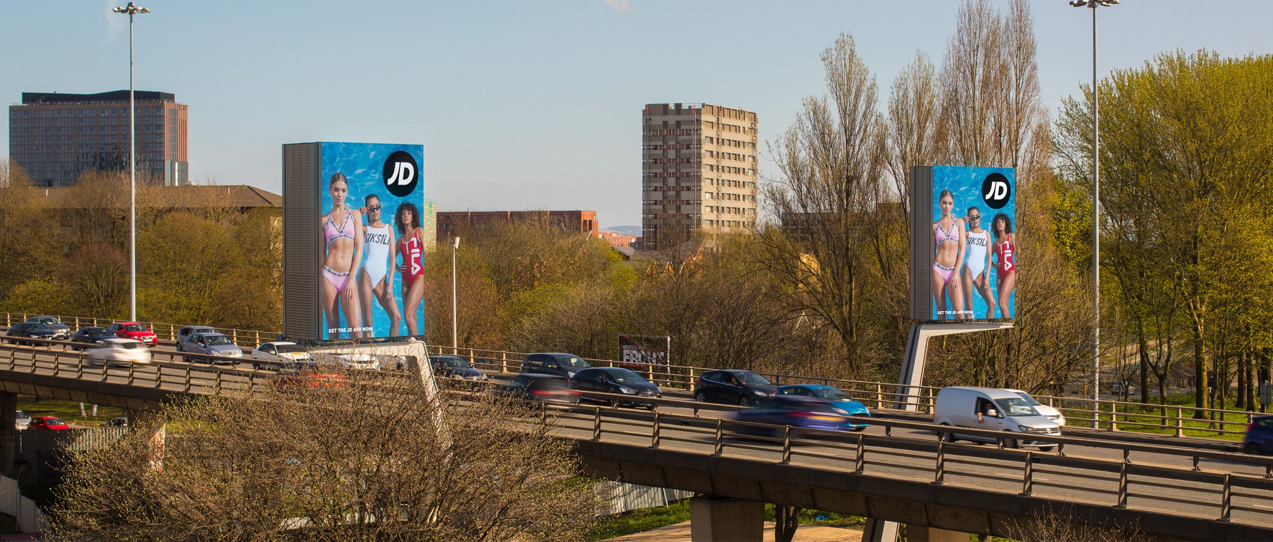 Deux panneaux publicitaires numériques double face ont été érigés de part et d’autre de la Mancunian Way, artère la plus fréquentée de Manchester. L’affichage synchronisé permet une très large diffusion de publicité extérieure au public de Manchester, touchant 3,6 millions de personnes toutes les deux semaines.