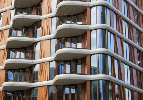 Stringent thermal performance requirements dominated the design from start to finish. A thermal analysis of the facade was carried out to maximise percentage of glazing and therefore the natural light let into the apartments. The build-up of the facade was minimised to ensure maximum lettable floor area while still meeting the thermal performance targets. Critical junctions between the facade and the balconies, which often have a dramatic effect on the thermal performance, were carefully detailed to eliminate the issue.
