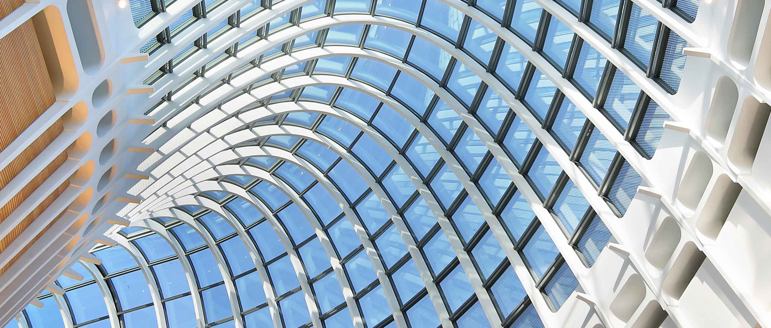 The design of the glazed envelope was developed hand-in-hand with the steel structure to ensure a coherent, unified structural concept that could be realised in a practical, buildable and economical manner. By rationalising the geometry of the panels, they went from doubly curved to cylindrical in shape which amounted to a considerable fabrication saving without affecting the architectural vision.