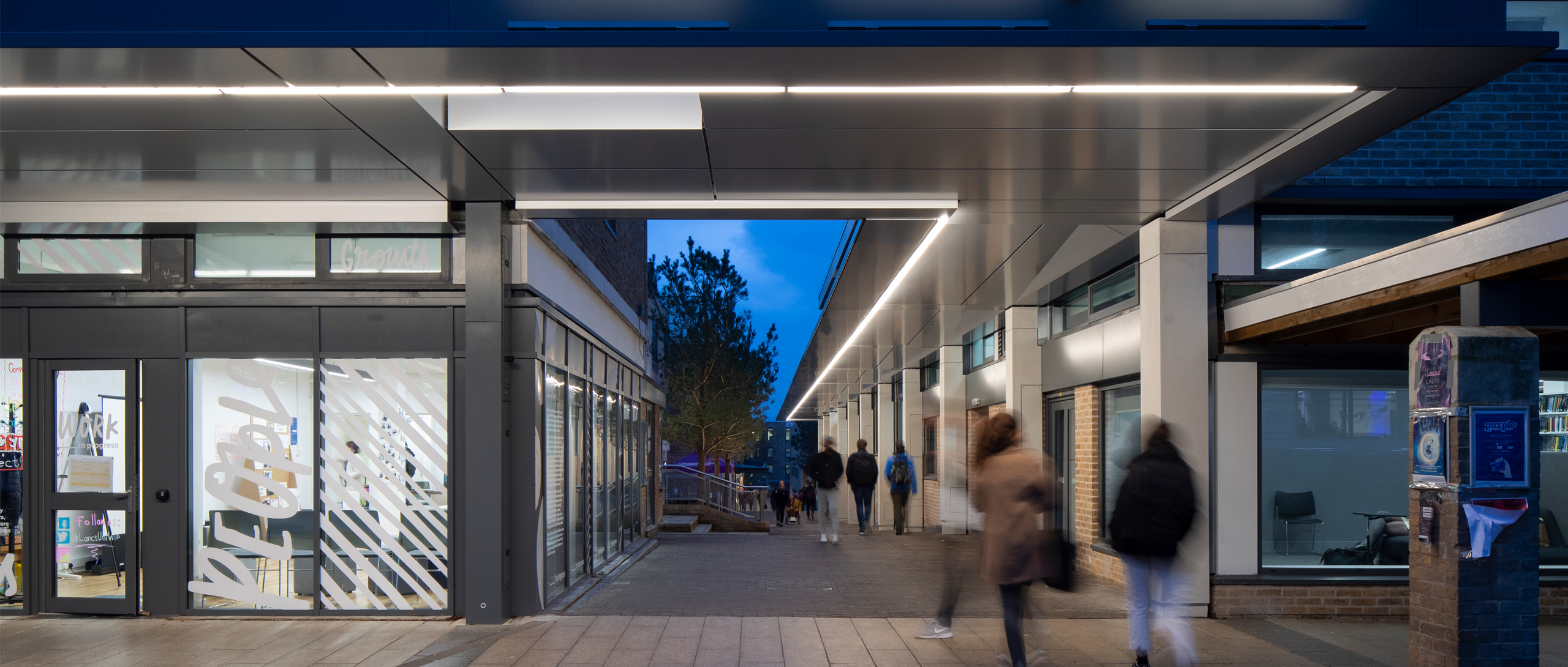 Lancaster university’s central circulation route – the ‘Spine’ is a kilometre pedestrian walkway that runs through the centre of the university campus.