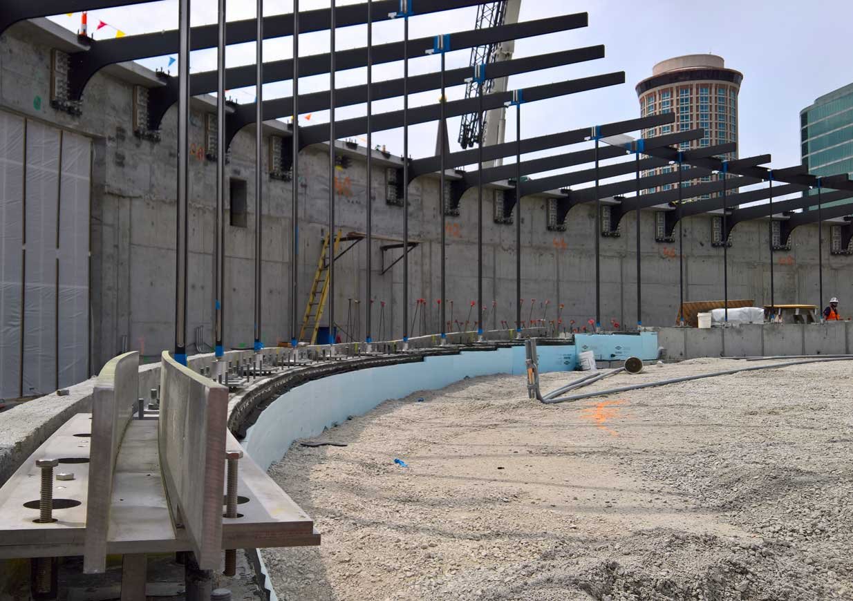 The cantilever and rod system uses 24-inch bolts to hold the cantilever in place and the structure is tuned for optimal blast performance using ductile plastic hinge failure mechanisms, designed to absorb the dynamic shockwaves in this seismic zone.