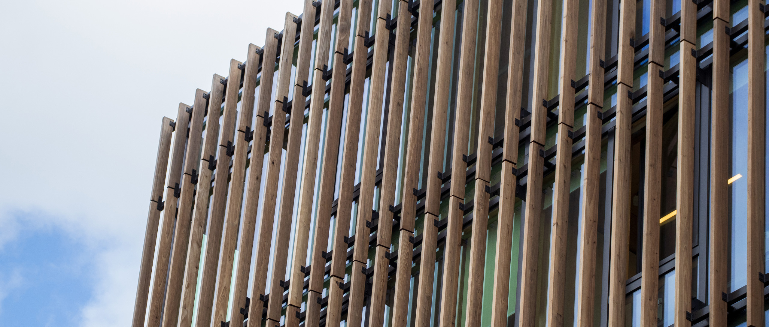 Our facades team has been responsible for developing facade options and types, designing the curtain walling and creating solar shading, which uses a timber fin design. Every element has been assessed to ensure the best fire rating, with an advanced sprinkler system integrated that would drench the facade in the event of fire.