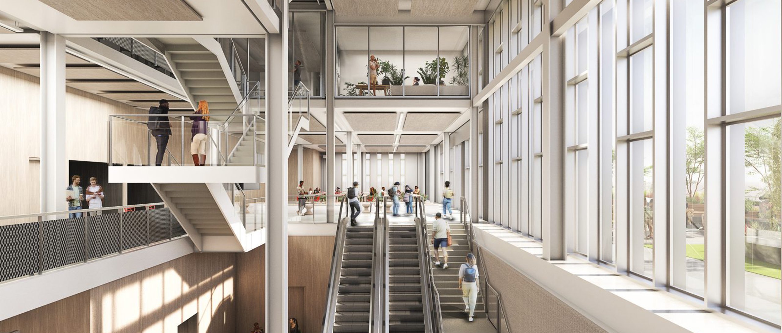 A new technical college on Olympic Way transforms a 14,000m² site into state-of-the-art teaching spaces, workshops, communal areas, and a landscaped roof terrace for United Colleges Group.